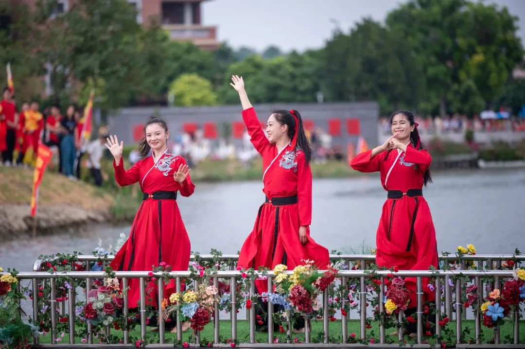 26日下午,伴随着激昂的音乐和欢呼声,比赛正式拉开帷幕。水上飞人表演精彩纷呈,为比赛增添了一抹亮色。紫南文化艺术团和金卓尔浩翔艺术培训也为参赛的选手们带来了锣鼓表演和舞蹈表演,共同加油助威,锣鼓演奏的《奋进紫南》振奋人心,舞蹈《紫南水韵》和《我爱这蓝色的海洋》则展现了水乡人民的柔美与坚韧。